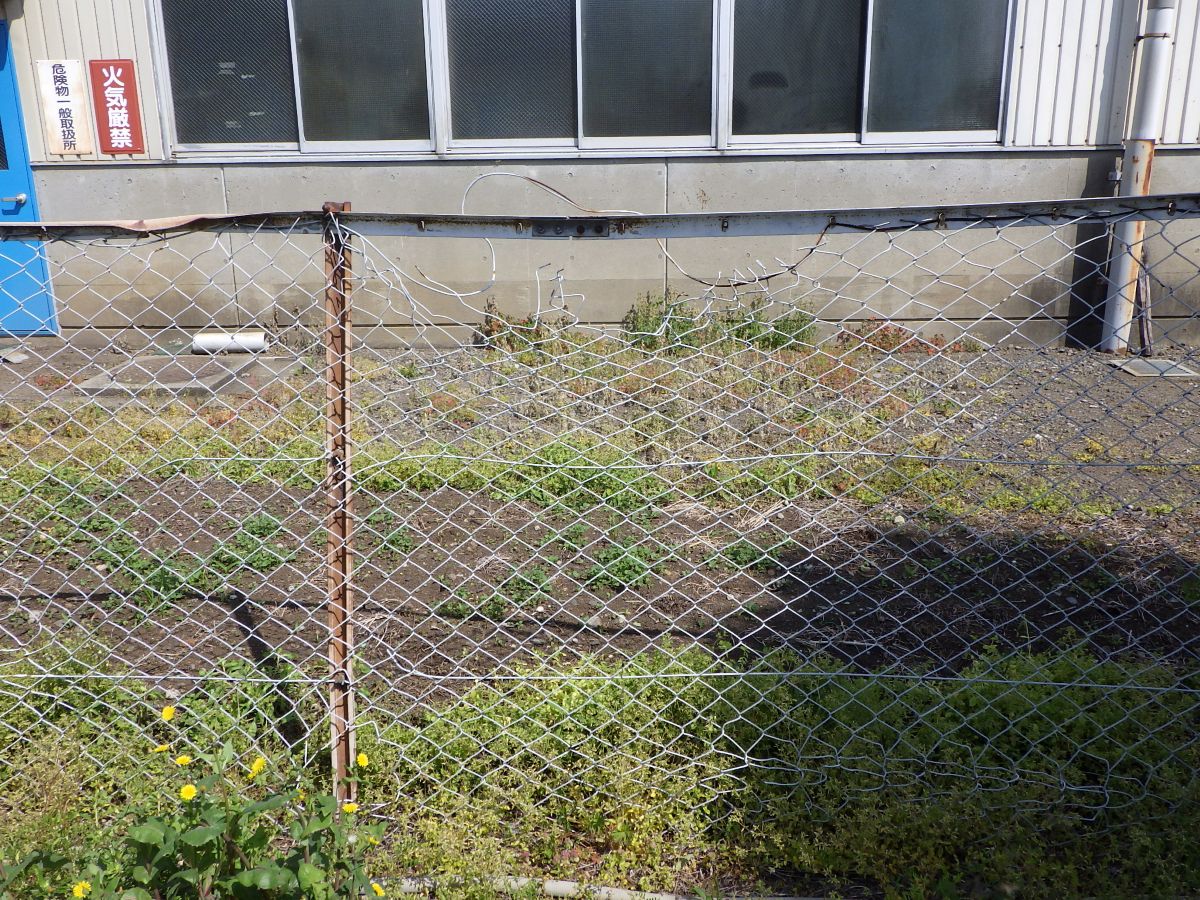 会社の敷地内のフェンスがだいぶ傷んでしまったということで、補修に伺いました。