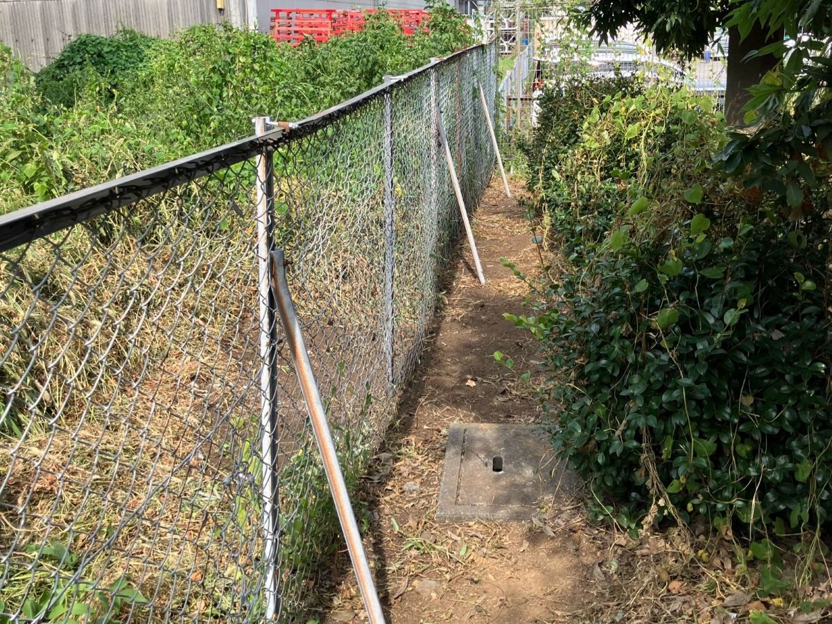 フェンス下部分が土に埋設されているところも多く、掘削が必要になりました。